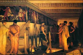 (3) Βικιπαίδεια: Τα Μεγάλα Ελευσίνια εορτάζονταν κατά τη 15η ημέρα του μήνα Βοηδρομιώνα και κρατούσαν εννέα ημέρες. Οι συμμετέχοντες αποκαλούνταν επόπται ή έφυροι. Την προηγουμένη της γιορτής, οι έφηβοι της πόλης υποδέχονταν τα Ιερά Αντικείμενα, τα οποία δε φανερώνονταν σε κανέναν παρά μόνο από τους Ιεροφάντες στους Μύστες, από την Ελευσίνα στο Ελευσίνιον, ιερό στη βάση της Ακρόπολης.