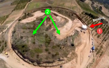 Στις φωτογραφίες φαίνεται απο υψηλά ο τάφος της Αμφίπολης. Η παρουσία οπών σε κάποια τοιχεία (3) στο δρόμο προς το κέντρο του τάφου και η κάλυψη τους απο χώματα δεν με πείθει ότι πρόκειται για κάτι φυσιολογικό, όπως θέλουν να περάσουν στη κοινή γνώμη ο Σαμαράς και κάποιοι αρχαιολόγοι. Εκτός αυτού, το πότε έγινε η οπή μπορεί να ελεγχθεί επιστημονικά και ξεκάθαρα… Γιατί αυτό δεν έχει γίνει; Aσχετοσύνη ή συμμετοχή σε κάτι;